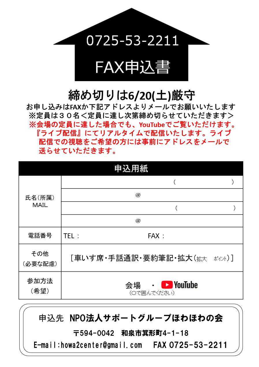 お申し込みの際は、必ず会場かYouTubeかをお知らせいただき、メールアドレスをお忘れなくご記載ください。