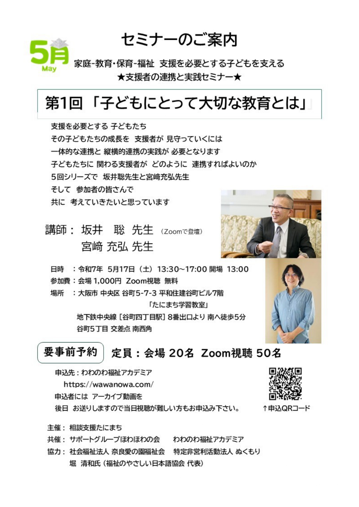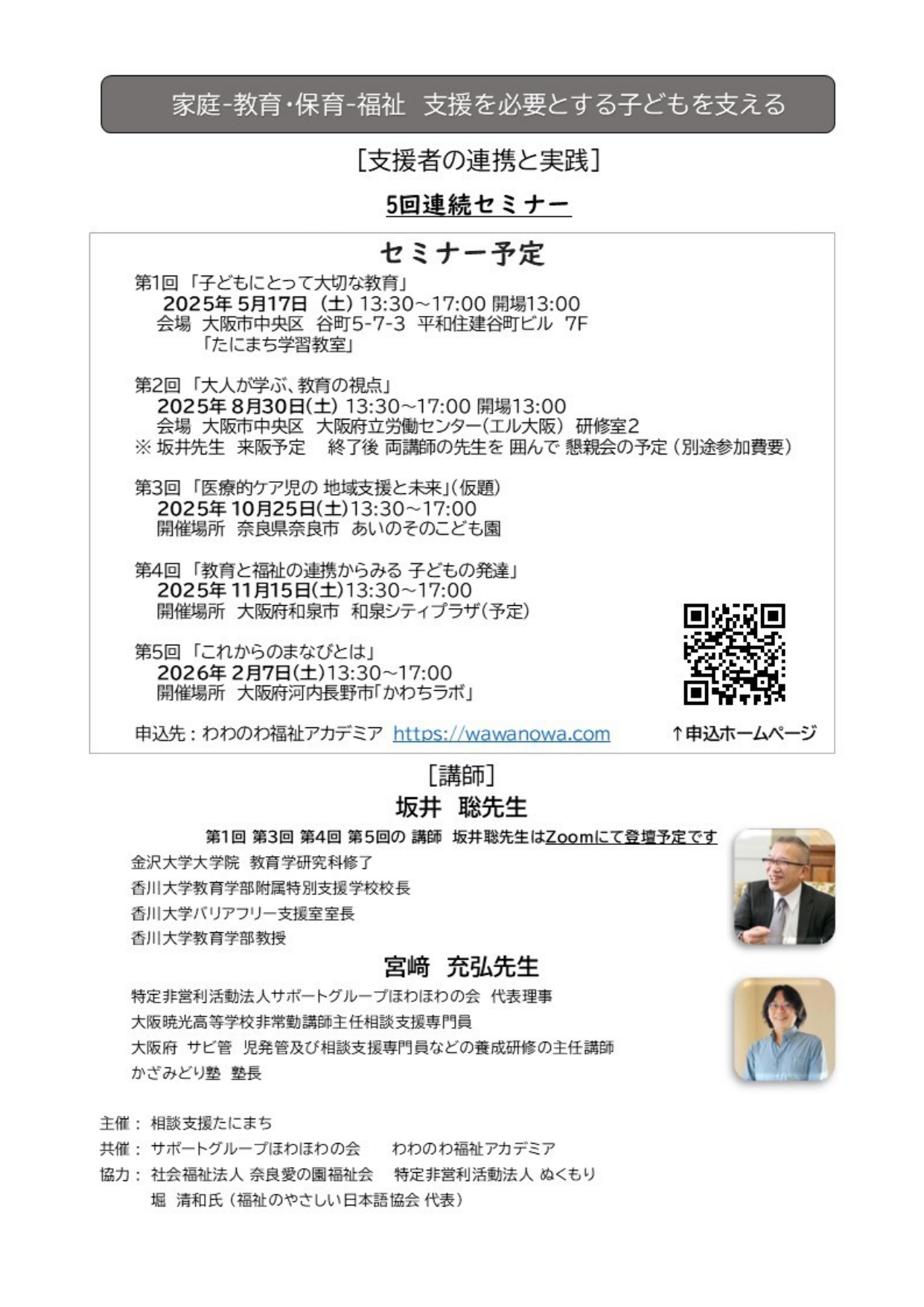 当法人の代表も講師として登壇します。5回連続セミナーのうちの第1回目が5月に開催されます。
